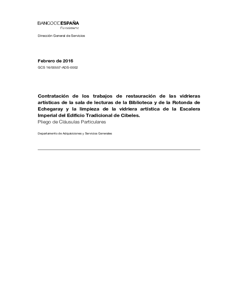 Direction General de ServiciosFebrero de 2016 GCS 16/00557ADS0002Contratacin de Los Barbados de restaurant DE leis firearms artistic DE la sale DE lectures DE la Biblioteca y de la Rotunda de Echegaray