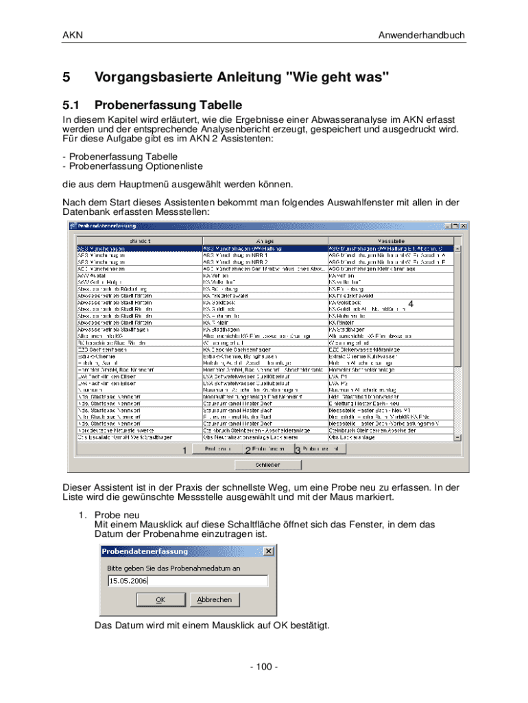 AKNAnwenderhandbuch5Vorgangsbasierte Ablating \” We get was\” 5.1Probenerfassung LaBelle diesel Capital word Rupert, we die Ergebnisse anger Abwasseranalyse I'm AKN east warden UND her entsprechende