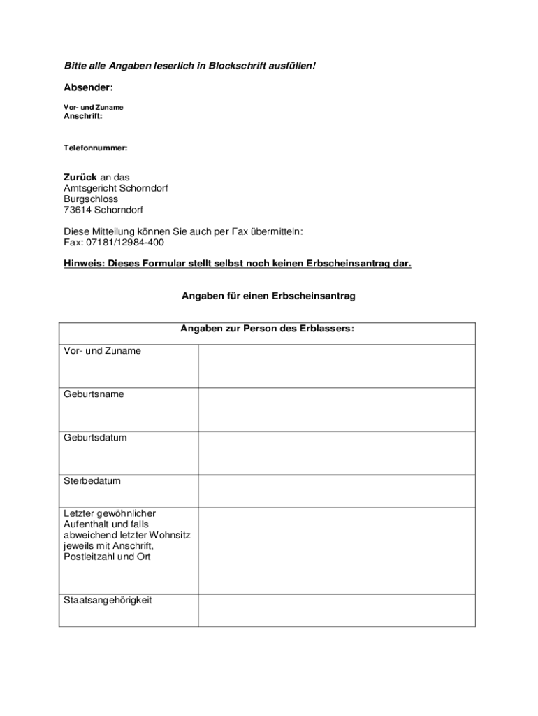 Bitter all Annabel Ehrlich in Blockschrift Allen! Ab sender: VOR UND ZunameAnschrift:Telefonnummer:Zuck a way Amtsgericht Schorndorf Burgschloss 73614 Schorndorf Dies Mittagong known She such per
