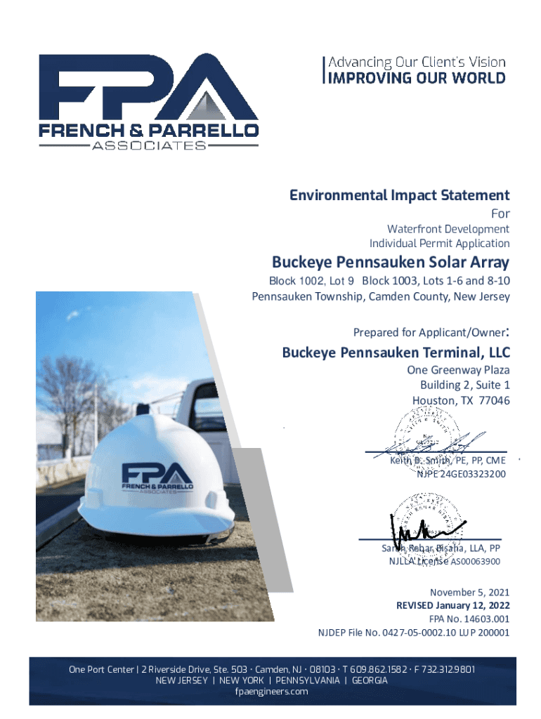 Individual Permit ApplicationBuckeye Pennsauken Solar Roadblock 1002, Lot 9 Block 1003, Lots 16 and 810
