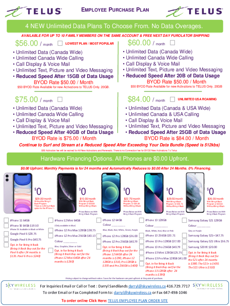 EMPLOYEE PURCHASE PLAN4 NEW Unlimited Data Plans To Choose From. No Data Overages. AVAILABLE FOR UP TO 10 FAMILY MEMBERS ON THE SAME ACCOUNT & FREE NEXT DAY PERCOLATOR SHIPPING$56.00 / month$60.00