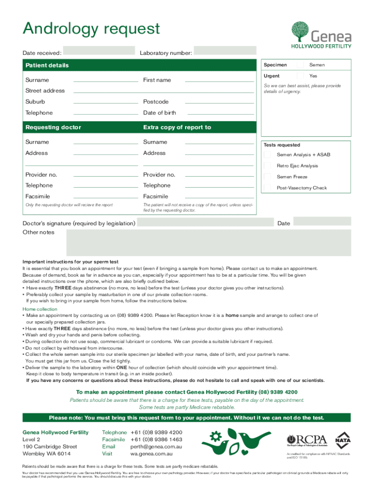 Andrology Request Form is not the form you're looking for?Search for another form here.