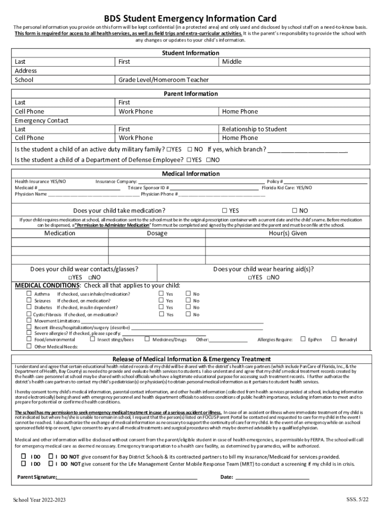 BDS Student Emergency Information Cardie personal information you provide on this form will be kept confidential (in a protected area) and only used and disclosed by school staff on a needtoknow basis.