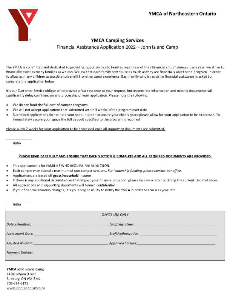 YMCA of Northeastern Ontario YMCA Camping Services 2022 2021 Financial Assistance Application 2020John Island Campeche YMCA is committed and dedicated to providing opportunities to families regardless