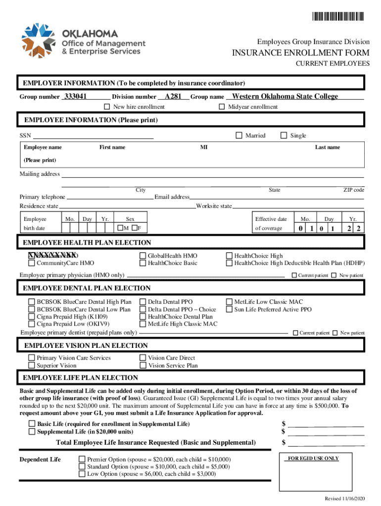 Employees Group Insurance DivisionINSURANCE ENROLLMENT FORM