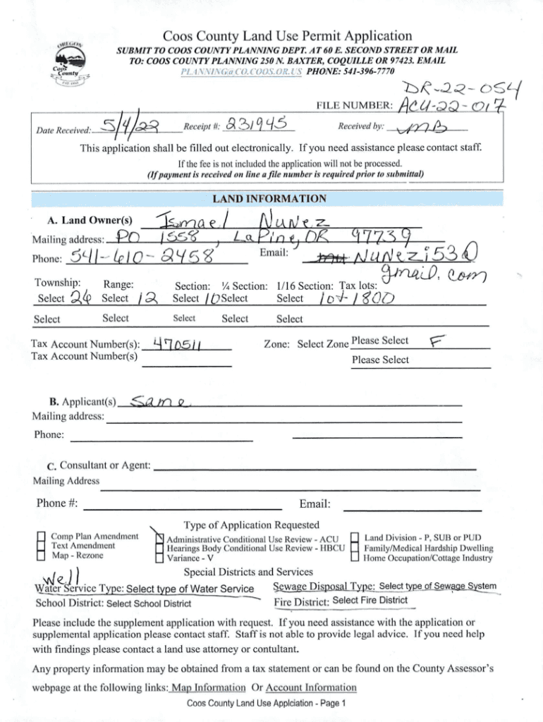 Coos County Land Use Permit Application
