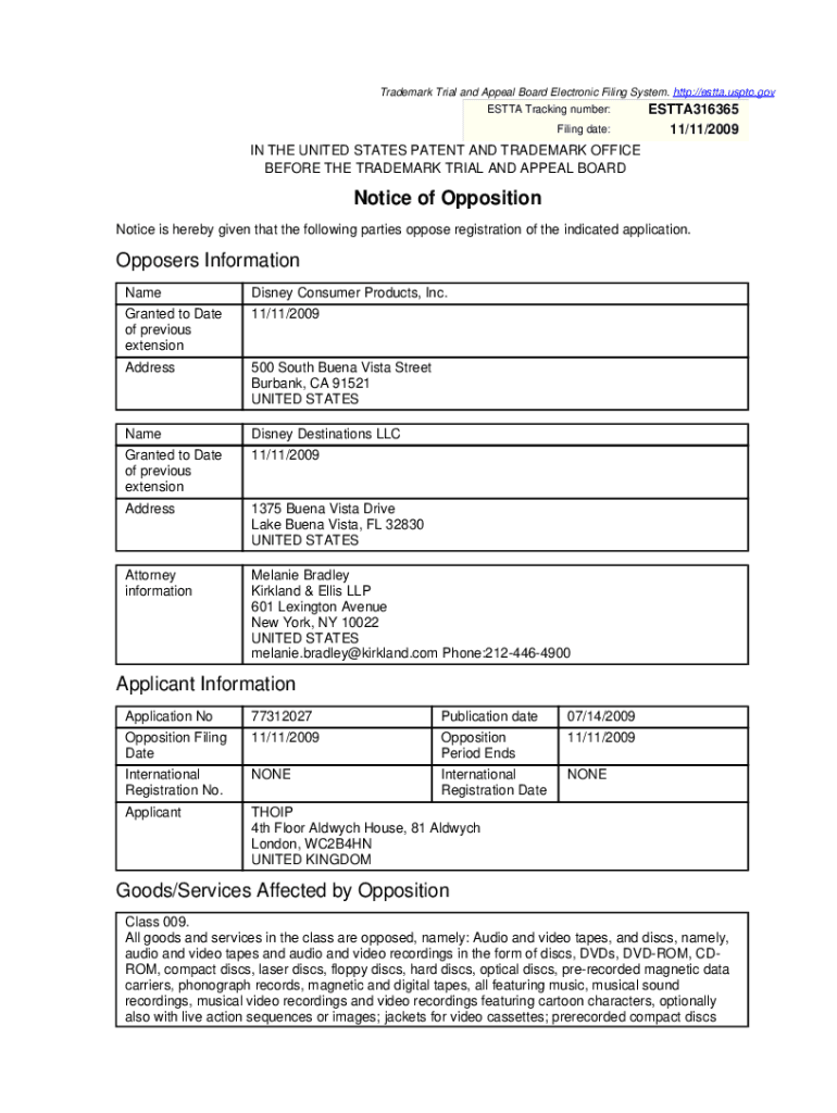 Get the free Notice of Opposition Opposers Information Applicant ... - TTABVue