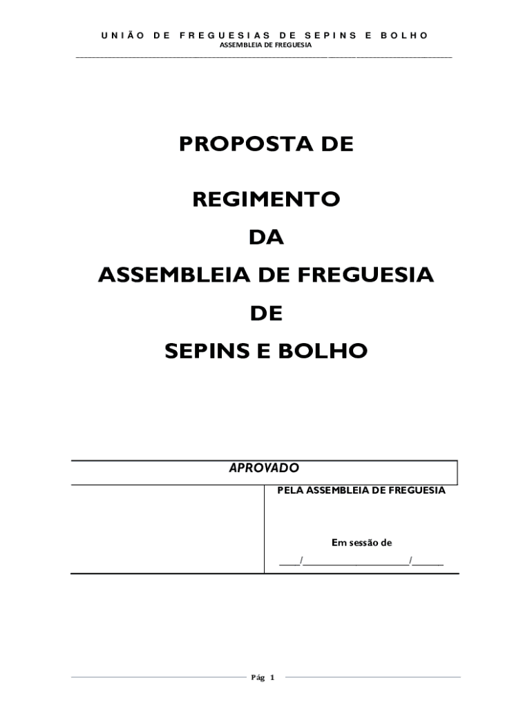 UN I OD EF R E G U E SI ASD ES E PI N SEB LH ASSEMBLED DE FREESIA ___PROPOSED DE REGIMENT DA ASSEMBLE IA DE FREESIA DE SPINS E BOLHOAPROVADO PEA ASSEMBLE IA DE FREGUESIAEm Esso de ___/___/___Pg 1UN
