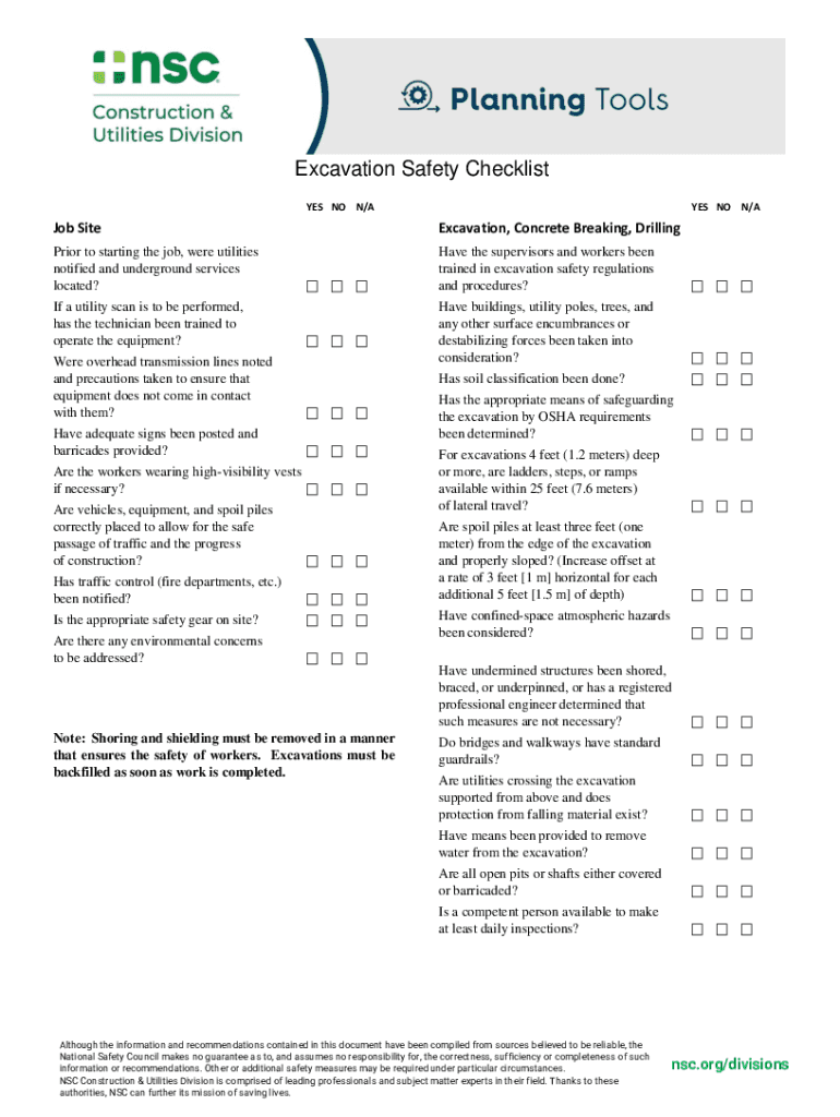 Excavation Safety Checklist