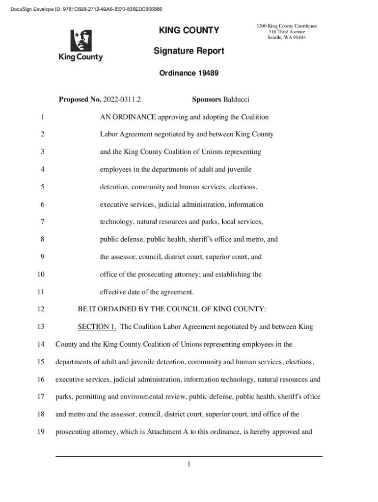 DocuSign Envelope ID: 9781C5B827124BA68370836EDC966886KING COUNTY1200 King County Courthouse 516 Third Avenue Seattle, WA 98104Signature Report Ordinance 19489Proposed No. 20220311.2Sponsors Balducci1AN