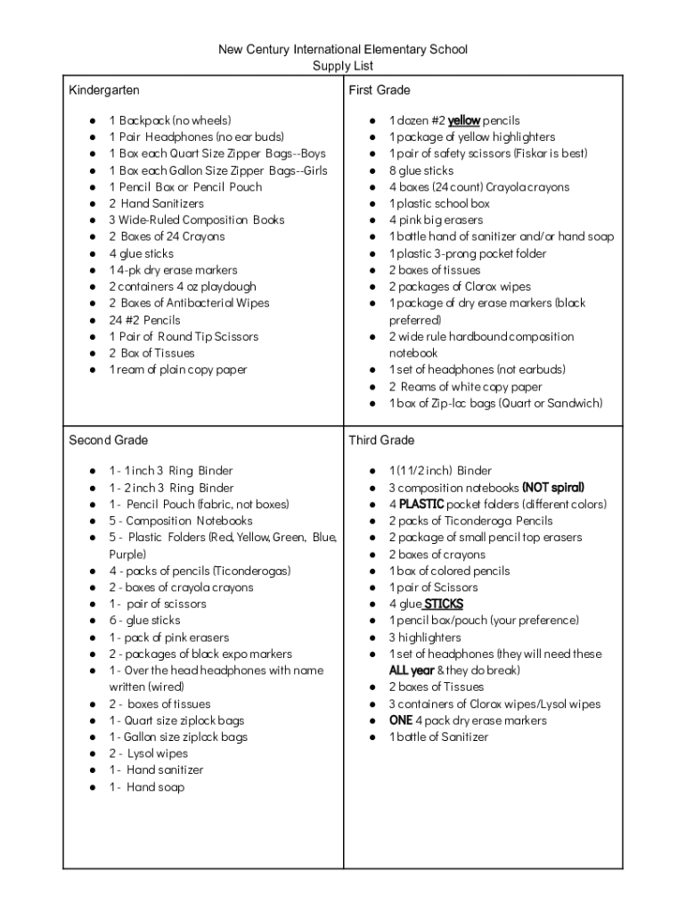 Get the free New Century Intl Elementary School Supply Lists and ...