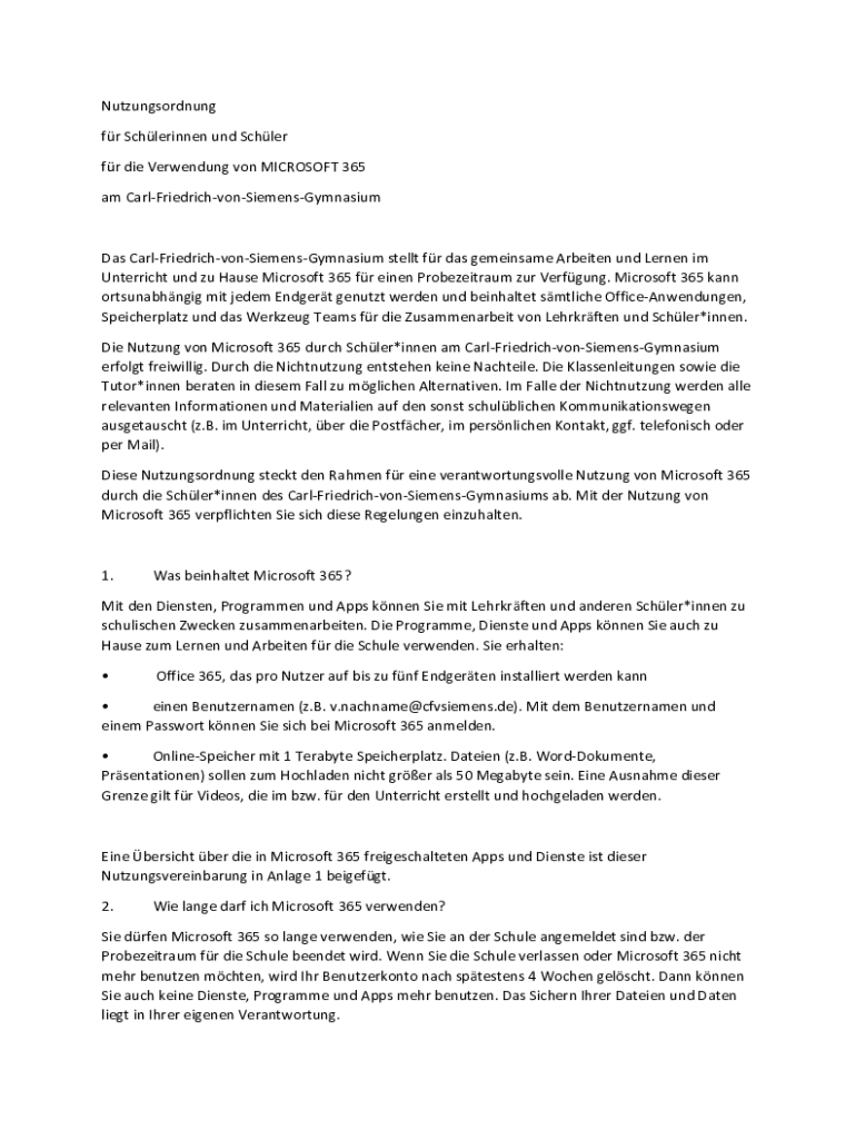 Get the free Nutzungsordnung - Carl-Friedrich-von-Siemens-Gymnasium