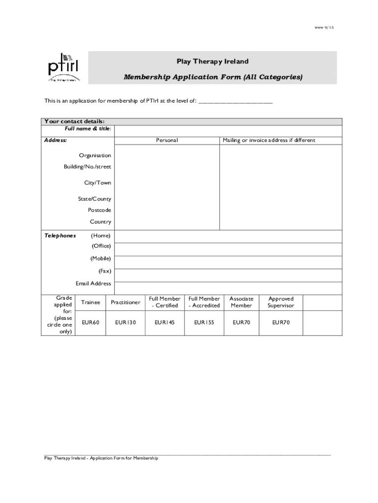 Get the free Play Therapy Ireland Membership Application Form (All ...