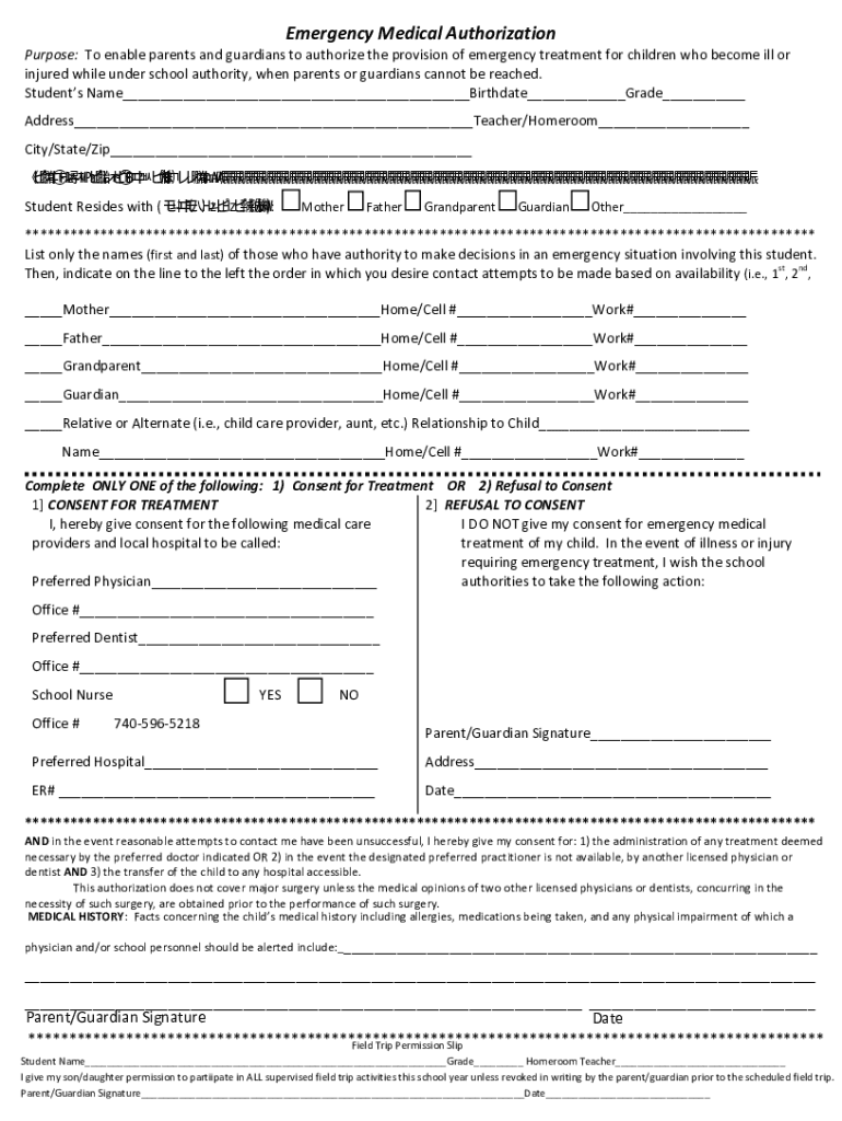 How to fill out emergency medical authorization?