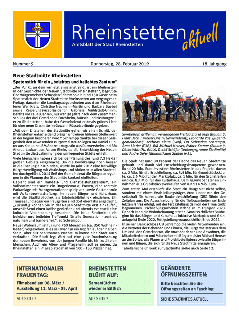 To fill out neue stadtmitte rheinstetten spatenstich, one needs to provide details of the project, such as location, purpose, timeline, and stakeholders involved.