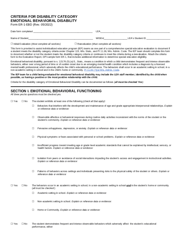 What is Emotional Behavioral DisabilityWisconsin Department of ... - dpi wi Form?