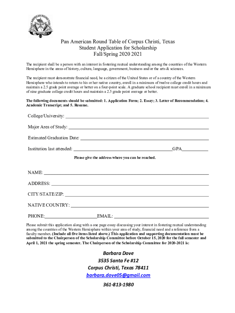Get the free Pan American Round Table of Corpus Christi, Texas Student ...