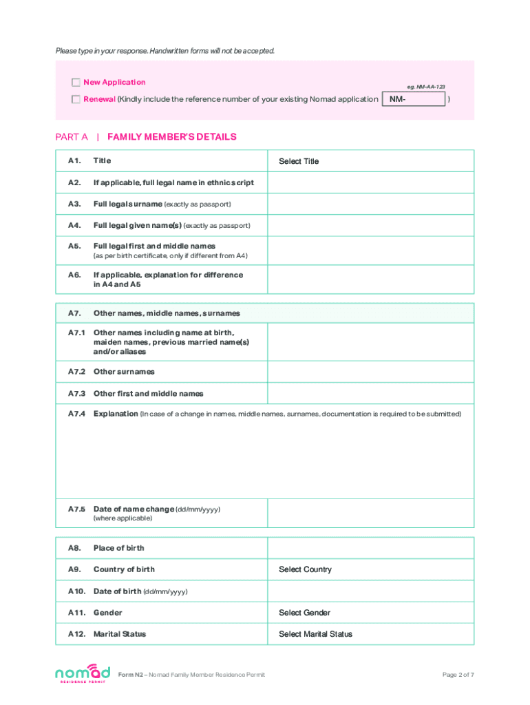 Get the free APPLICATION FORM - Nomad Residence Permit