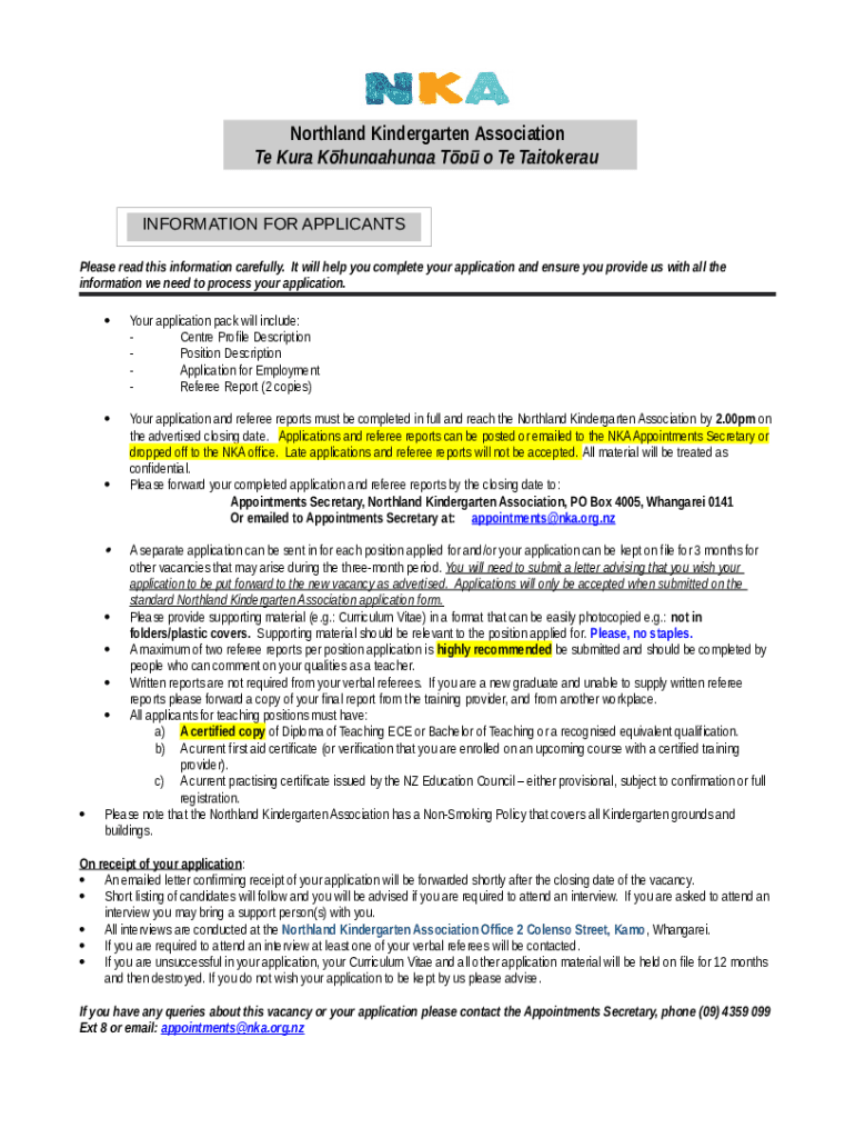 The northland kindergarten association position description is a writable document needed to be submitted to the relevant address in order to provide some information. It has to be completed and signed, which is possible in hard copy, or via a particular solution like PDFfiller. This tool helps to complete any PDF or Word document right in the web, customize it depending on your purposes and put a legally-binding e-signature. Right away after completion, user can send the northland kindergarten association position description to the relevant individual, or multiple ones via email or fax. The template is printable as well from PDFfiller feature and options proposed for printing out adjustment. Both in digital and physical appearance, your form should have a clean and professional look. It's also possible to turn it into a template for later, there's no need to create a new blank form from the beginning. You need just to amend the ready form.