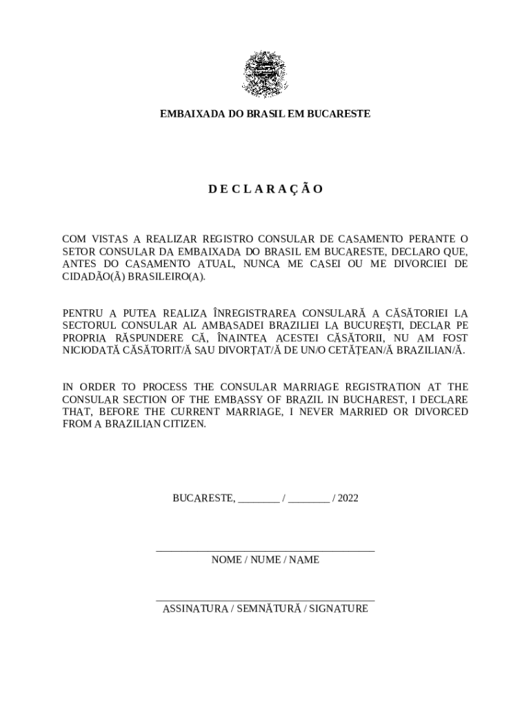 Instructions for the O casamento internacional e o seu registro no Brasil form