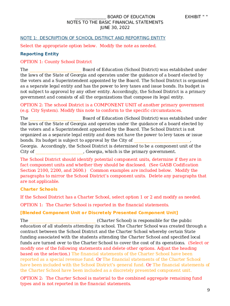 Template Note 1 - Georgia Department of Audits instructions