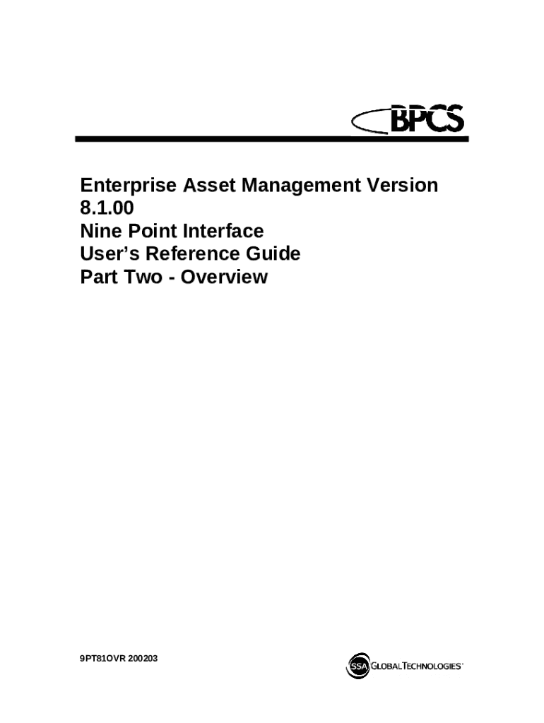 What is Enterprise Asset Management Version 8.1.00 Nine Point Interface Users Reference Guide - Part Two Overview Form?