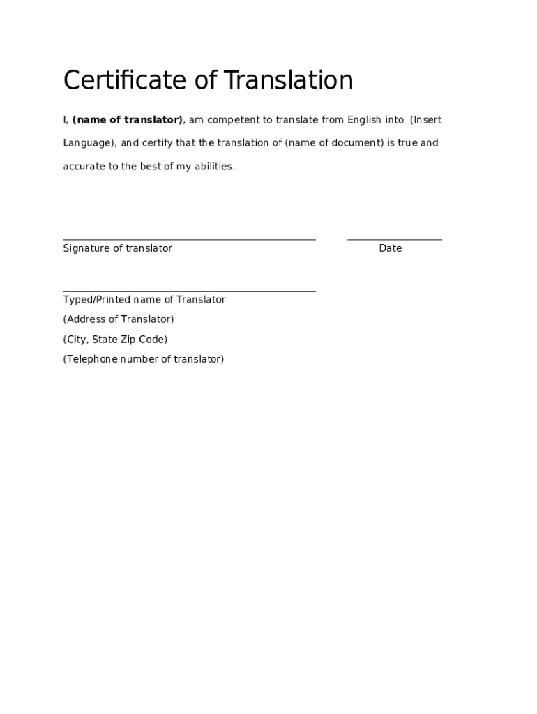 What is Need a Certificate of Translation Sample? Free Download get ... Form?