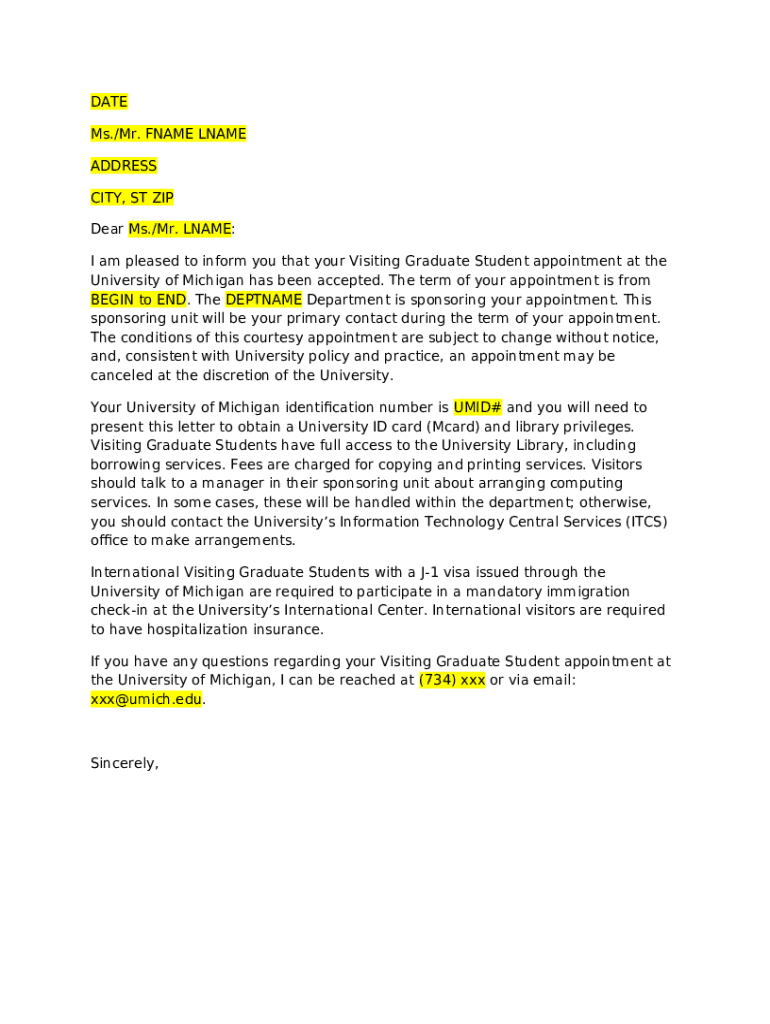 How to fill Visiting Graduate Student Renewal authorization letter template word template