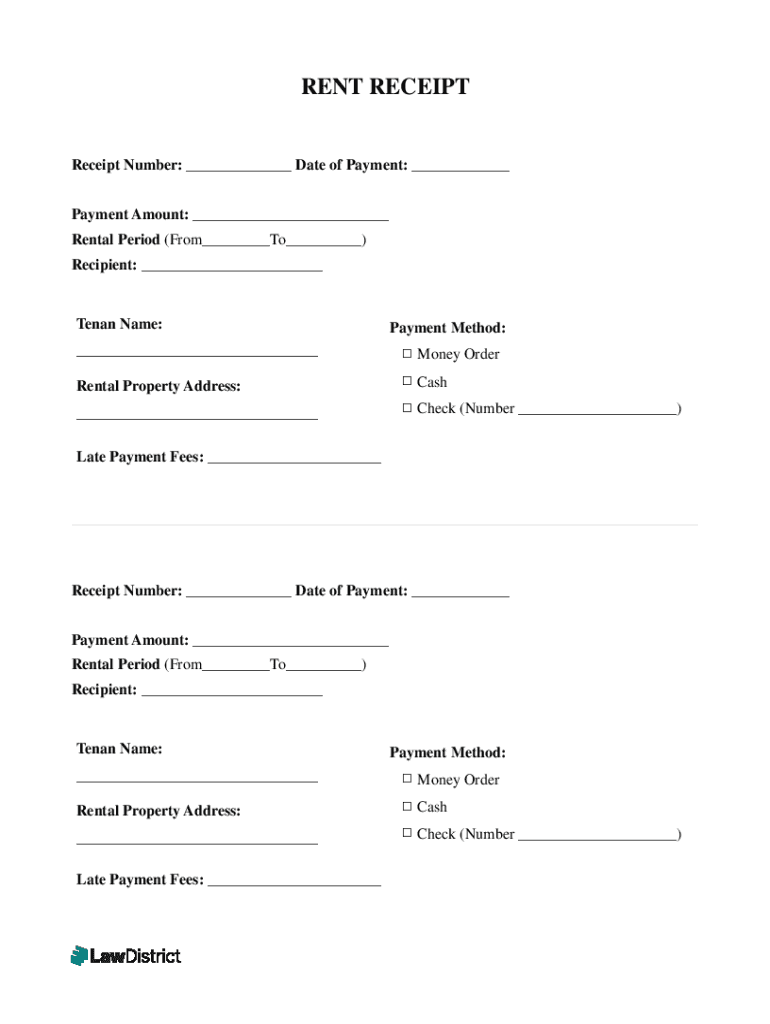 RENT RECEIPTReceipt Number: ___ Date of Payment: ___ Payment Amount: ___ Rental Period (From___To___) Recipient: ___Tenant Name:Payment Method:___ Money OrderRental Property Address: Cash___ Check