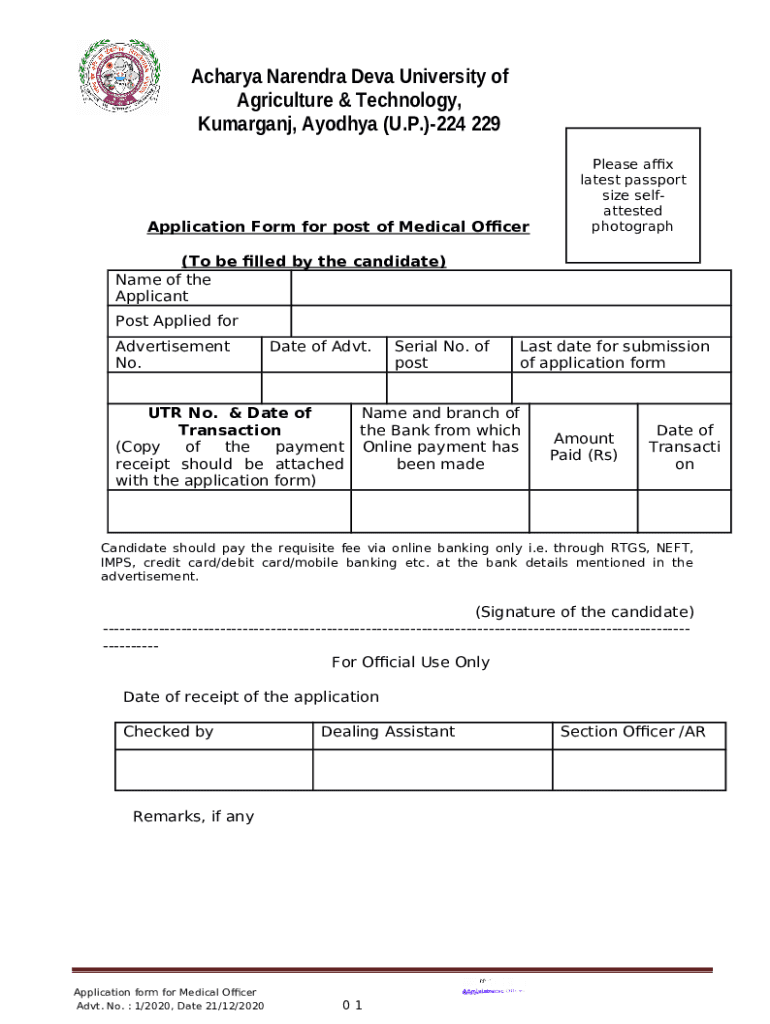 Instructions for the form Narendra Deva University of Agriculture and Technology ...