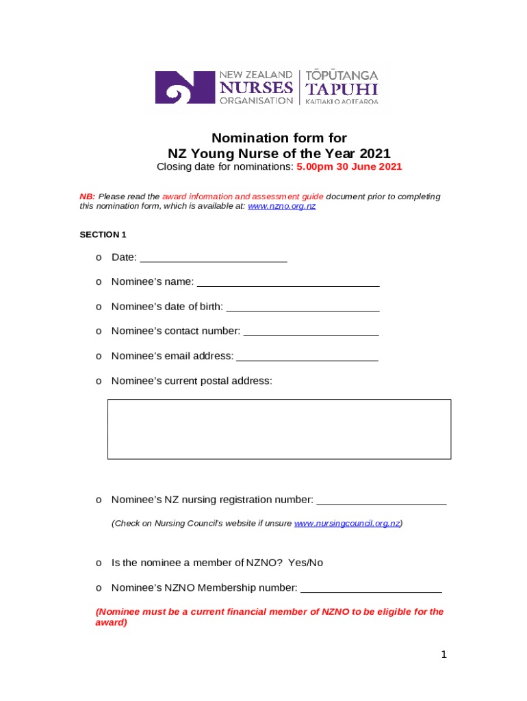 Instructions for the form Nomination for