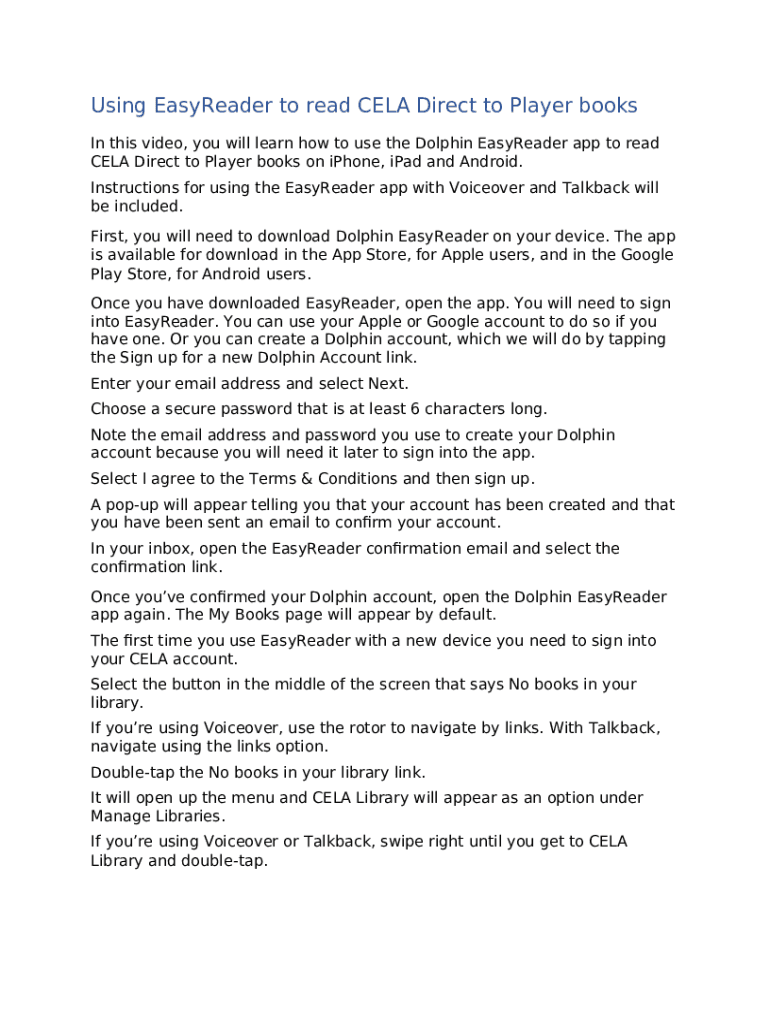 Instructions for the form How to Access Resources from CELA and use Dolphin Easy ...