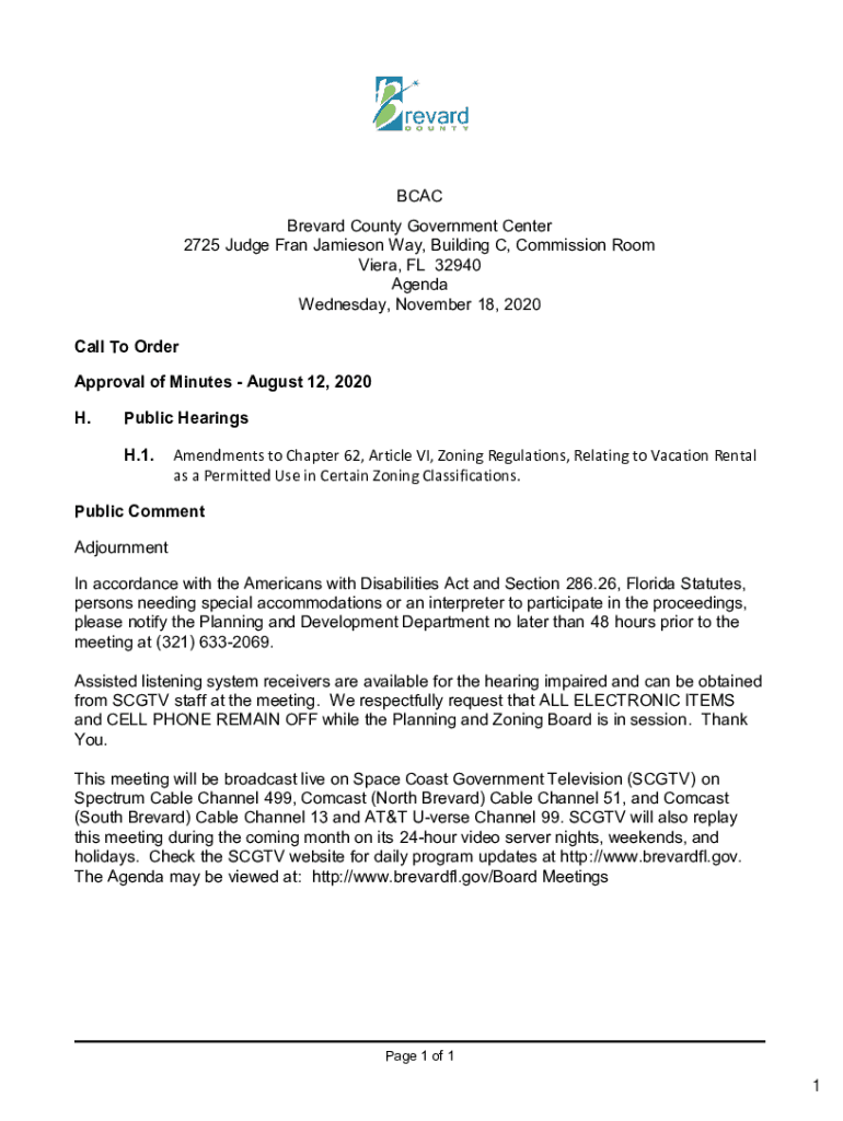 CAC Brevard County Government Center 2725 Judge Fran Jamieson Way, Building C, Commission Room Vera, FL 32940 Agenda Wednesday, November 18, 2020, Call To Order Approval of Minutes August 12, 2020,