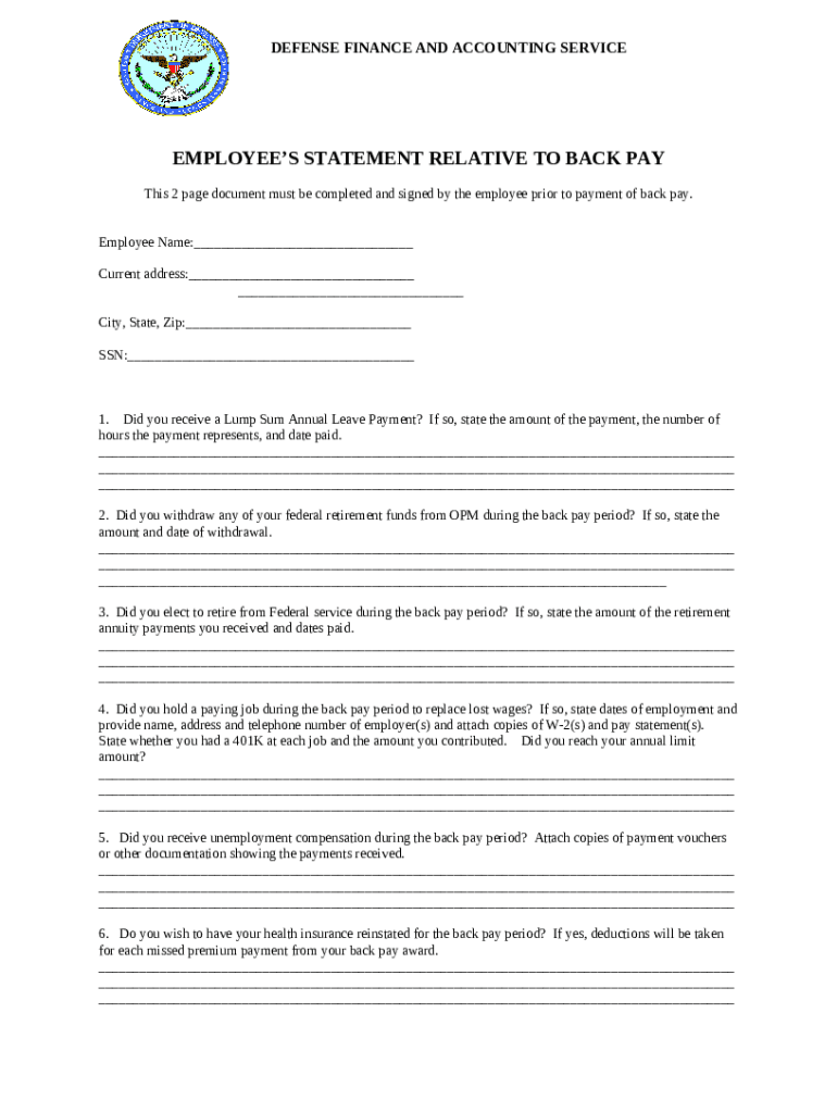Frequently asked questions about the form Employee Statement Relative to Back Pay - APAN - Sign In