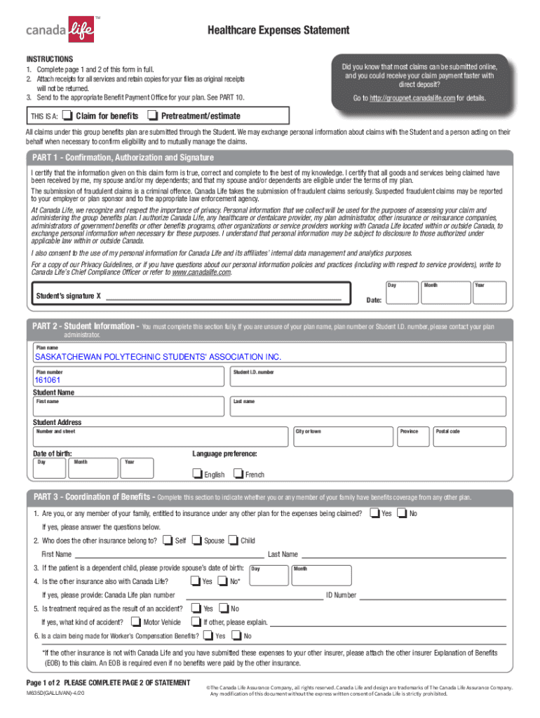 Healthcare Expenses Statement INSTRUCTIONS1. Complete page 1 and 2 of this form in full. 2. Attach receipts for all services and retain copies for your files as original receipts will not be returned.