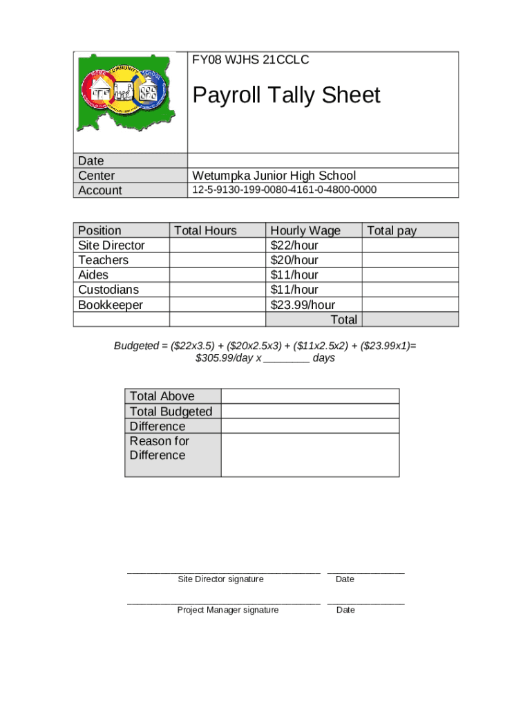 The Payroll Tally Sheet is a document needed to be submitted to the required address in order to provide specific info. It has to be filled-out and signed, which can be done manually in hard copy, or with the help of a certain software such as PDFfiller. It allows to fill out any PDF or Word document directly from your browser (no software requred), customize it depending on your requirements and put a legally-binding electronic signature. Right away after completion, you can send the Payroll Tally Sheet to the relevant receiver, or multiple ones via email or fax. The template is printable as well due to PDFfiller feature and options offered for printing out adjustment. Both in digital and in hard copy, your form will have a organized and professional outlook. You may also turn it into a template for further use, without creating a new document again. You need just to customize the ready document.