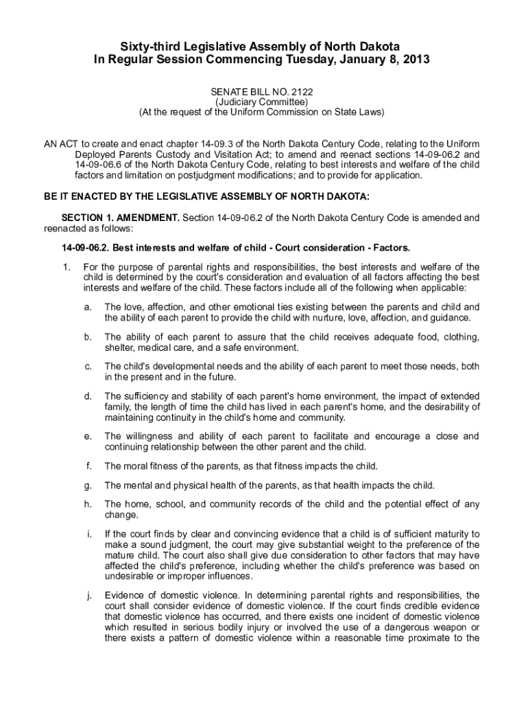 Sixty-third Legislative Assemblies of North Dakota In Regular Session Commencing Tuesday, January 8, 2013, SENATE BILL NO. 2122 (Judiciary Committee) (At the request of the Uniform Commission on State