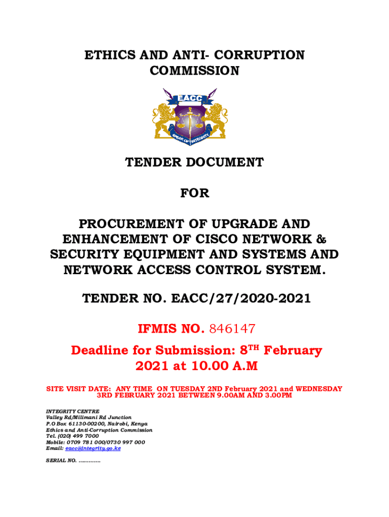 ETHICS AND ANTI CORRUPTION COMMISSIONTENDER DOCUMENT FOR PROCUREMENT OF UPGRADE AND ENHANCEMENT OF CISCO NETWORK & SECURITY EQUIPMENT AND SYSTEMS AND NETWORK ACCESS CONTROL SYSTEM. TENDER NO. EACH/27/20202021