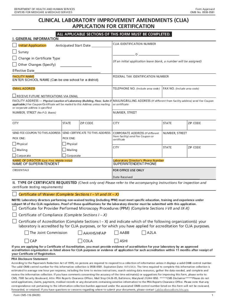 OMB No. 09380581CLINICAL LABORATORY IMPROVEMENT AMENDMENTS (CIA)