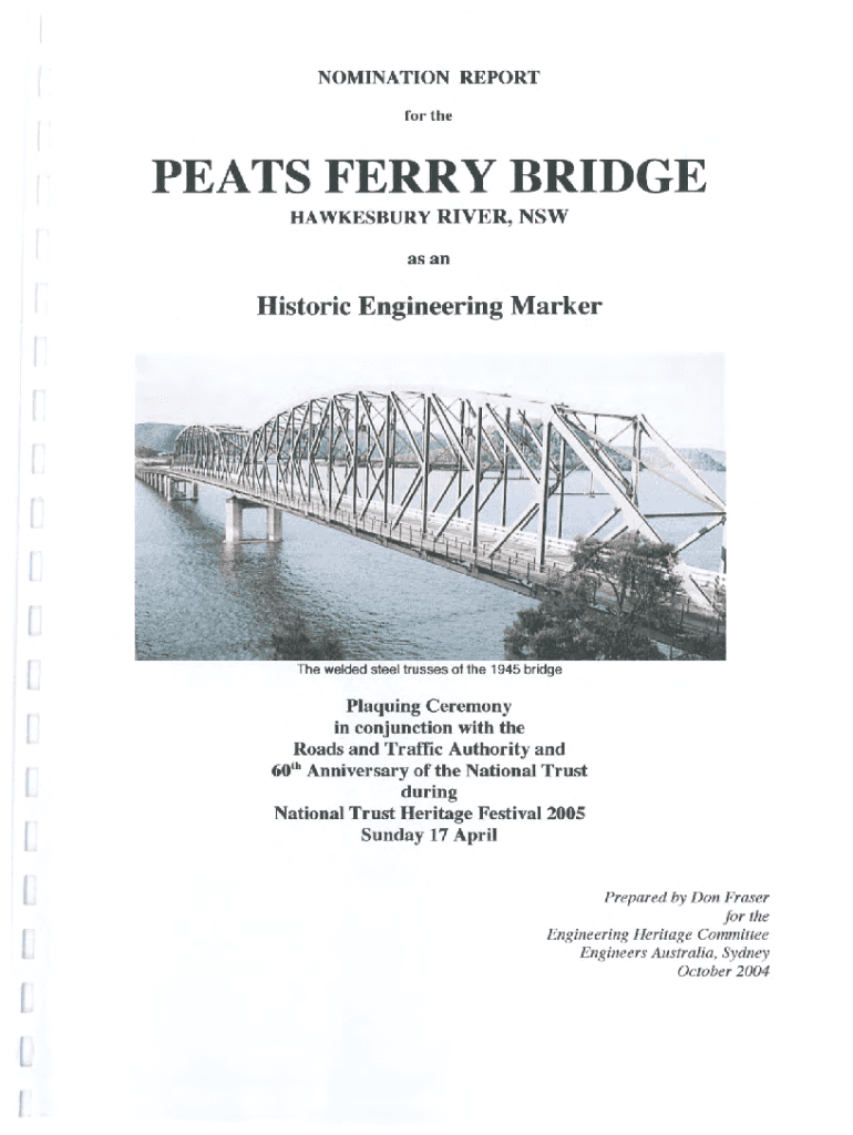 NOMINATION REPORT for threats FERRY BRIDGE HA AMESBURY RIVER, NSW as historic Engineering Margrethe welded steel trusses of the 1945 bridgePlaquing Ceremony in conjunction with the Roads and Traffic