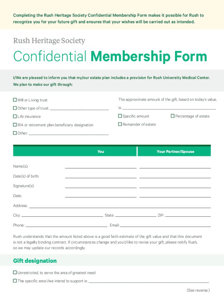 Get the free Confidential Membership Form - Rush University Medical Center