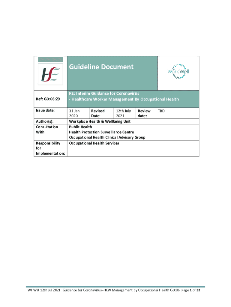 Get the free Occupational Health Interim Guidance. Interim Guidance RE