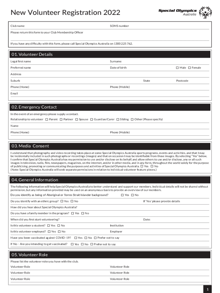 Club nameAustraliaSOMS numberless return this form to your Club Membership Officer you have any difficulty with this form, please call Special Olympics Australia on
