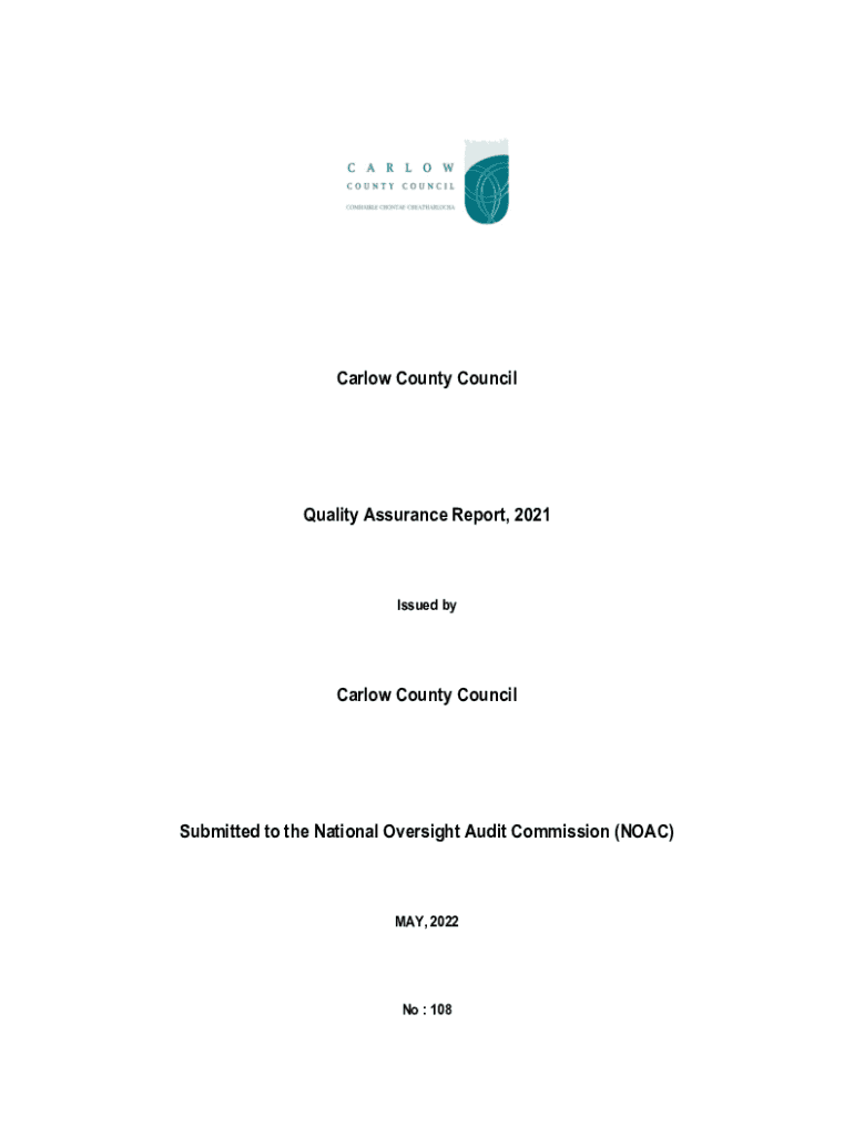 Carlos County CouncilQuality Assurance Report, 2021Issued Barlow County CouncilSubmitted to the National Oversight Audit Commission (NOAA)MAY, 2022No : 108CERTIFICATIONThe annual Quality Assurance