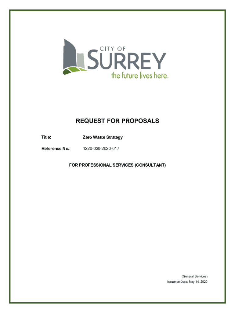 REQUEST FOR PROPOSALS Title:Zero Waste StrategyReference No.:12200302020017FOR PROFESSIONAL SERVICES (CONSULTANT)(General Services) Issuance Date: May 14, 2020TABLE OF CONTENTS 1.INTRODUCTION .................................................................................................................3