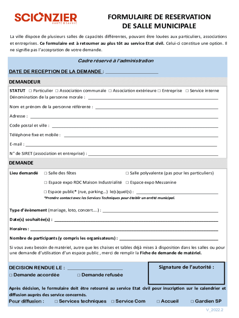 Any individual or organization looking to reserve a service or a product is required to file formulaire de reservation de.