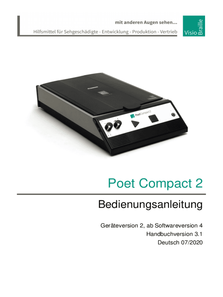 Poet Compact 2 Bedienungsanleitung Reversion 2, ab Software version 4 Handbuchversion 3.1 Deutsche 07/2020VisioBraille MIT Andersen Auden SERENDIP then die Produce her BAUM Rate AG water! Die Fa.