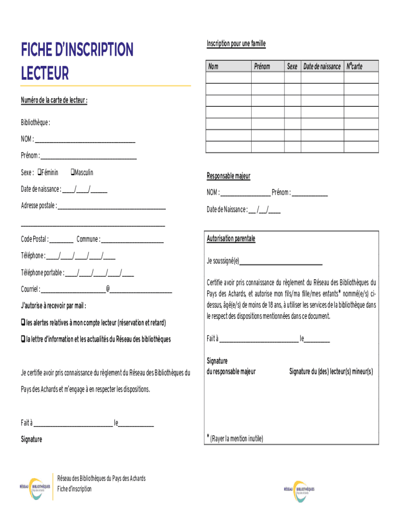 Fill out your bulletin dinscription a remplir online with pdfFiller!