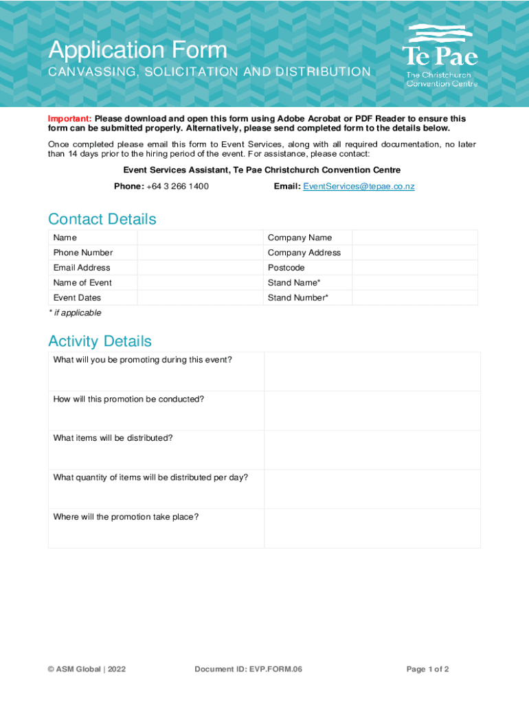 Application Form CANVASSING, SOLICITATION AND DISTRIBUTIONImportant: Please download and open this form using Adobe Acrobat or PDF Reader to ensure this form can be submitted properly. Alternatively,