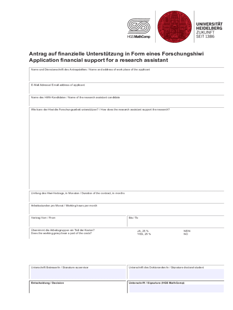 Ant rag AUF financially Untersttzung in Form lines Forschungshiwi